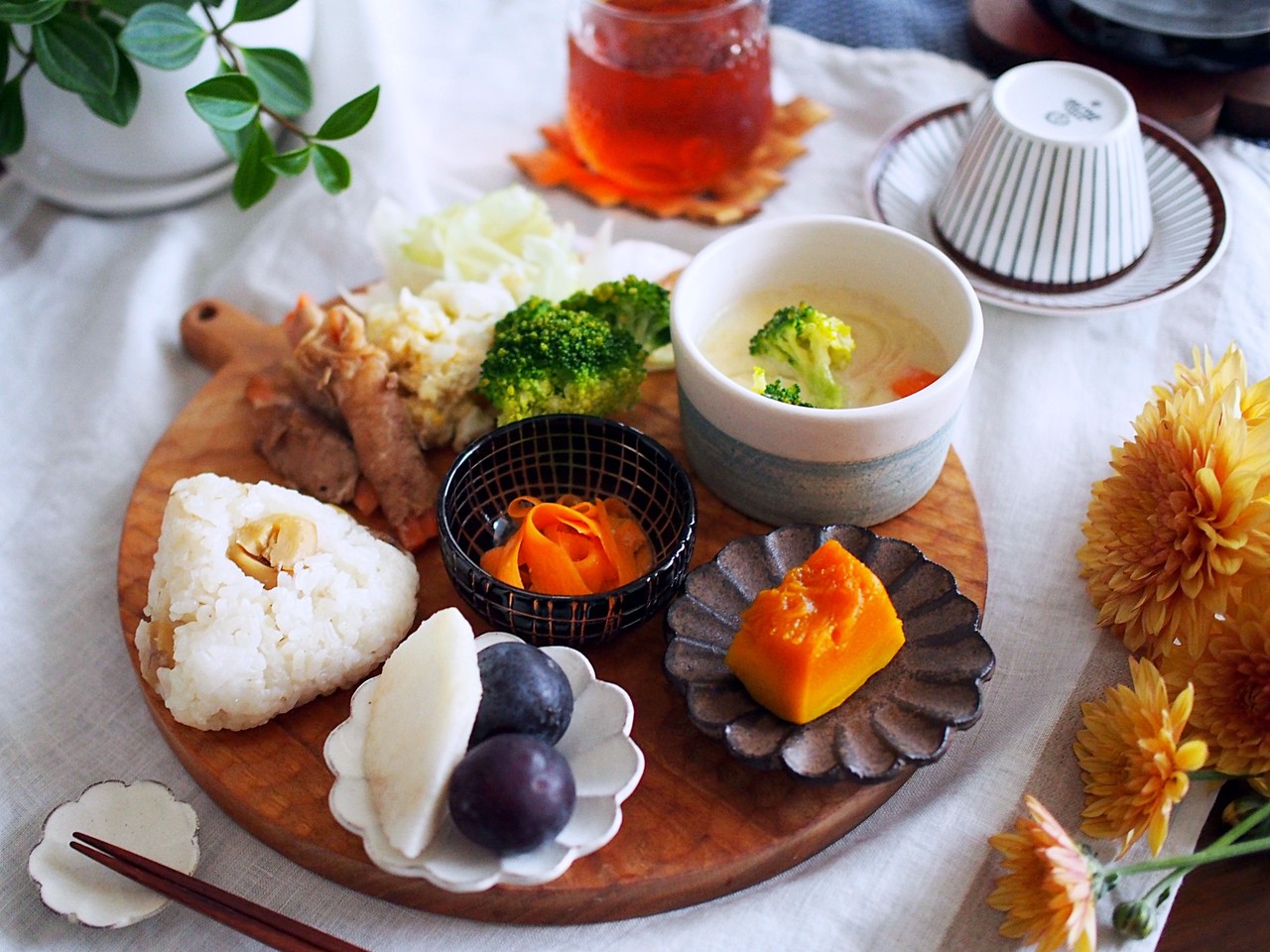 あとは残り物の塩肉じゃがとか鶏出汁で作ったスープとか・・