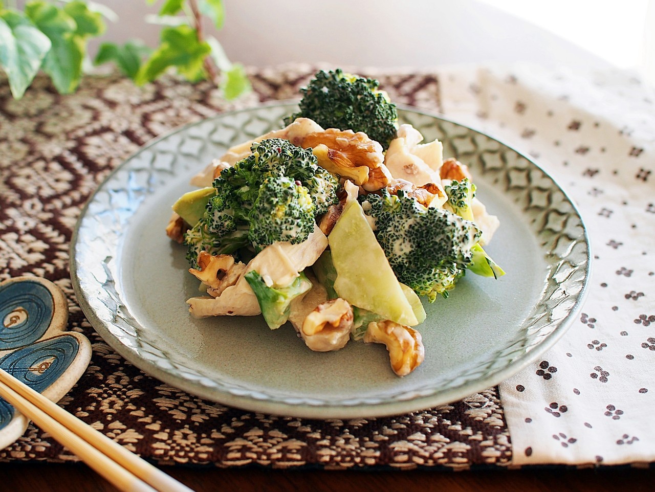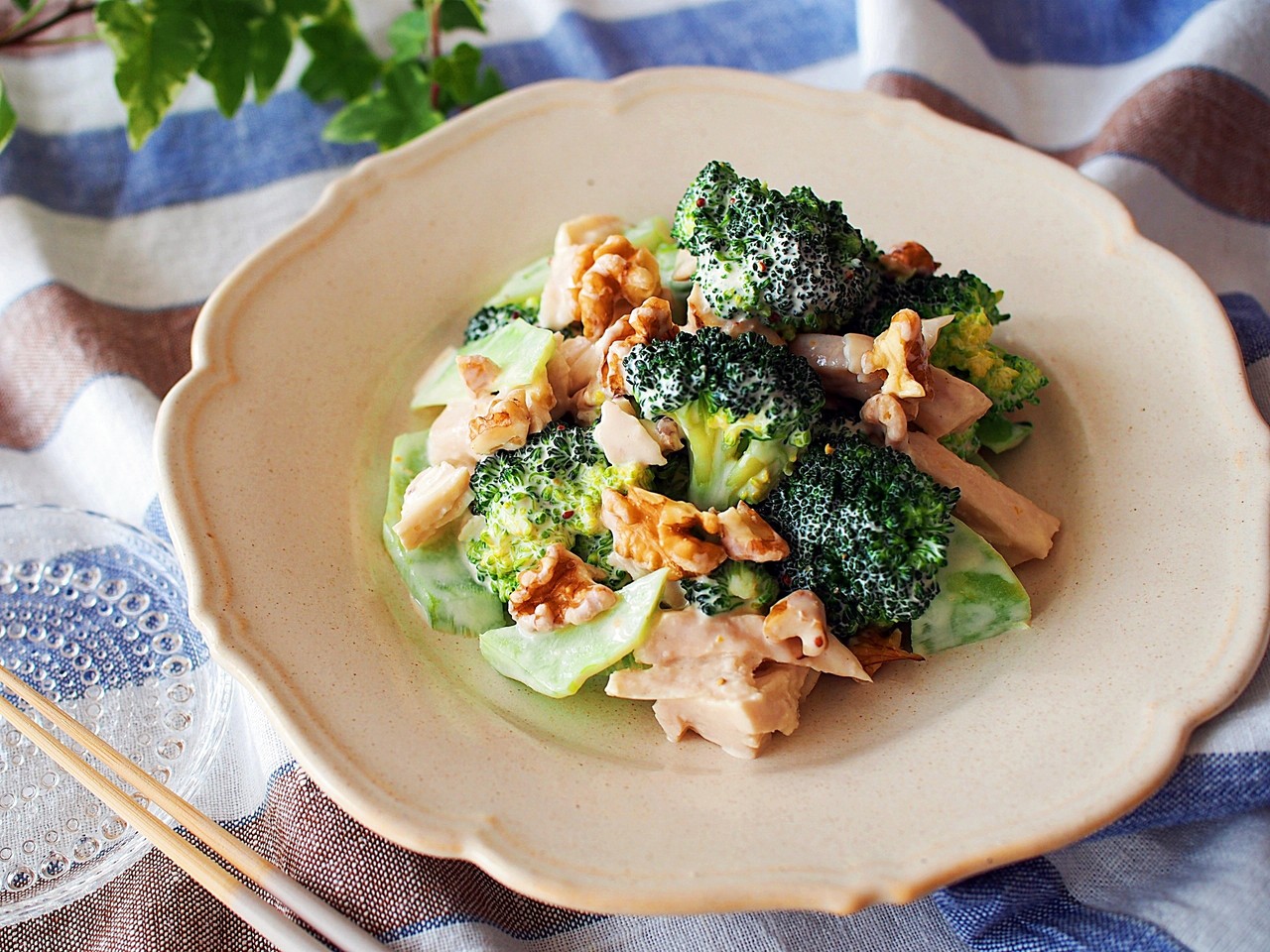 を入れて混ぜ、カットしたサラダチキンとブロッコリーを和えるだけ。