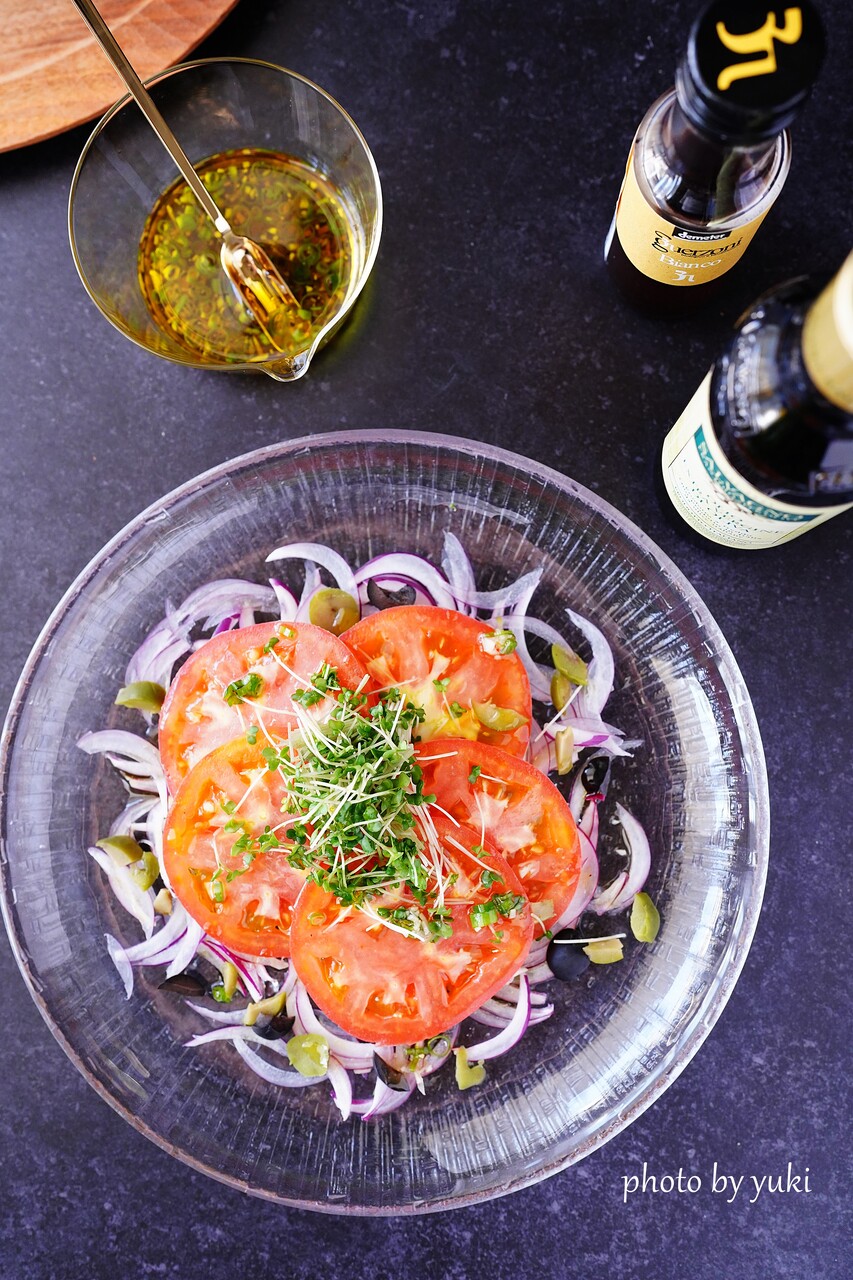紫玉ねぎとトマトをカットして