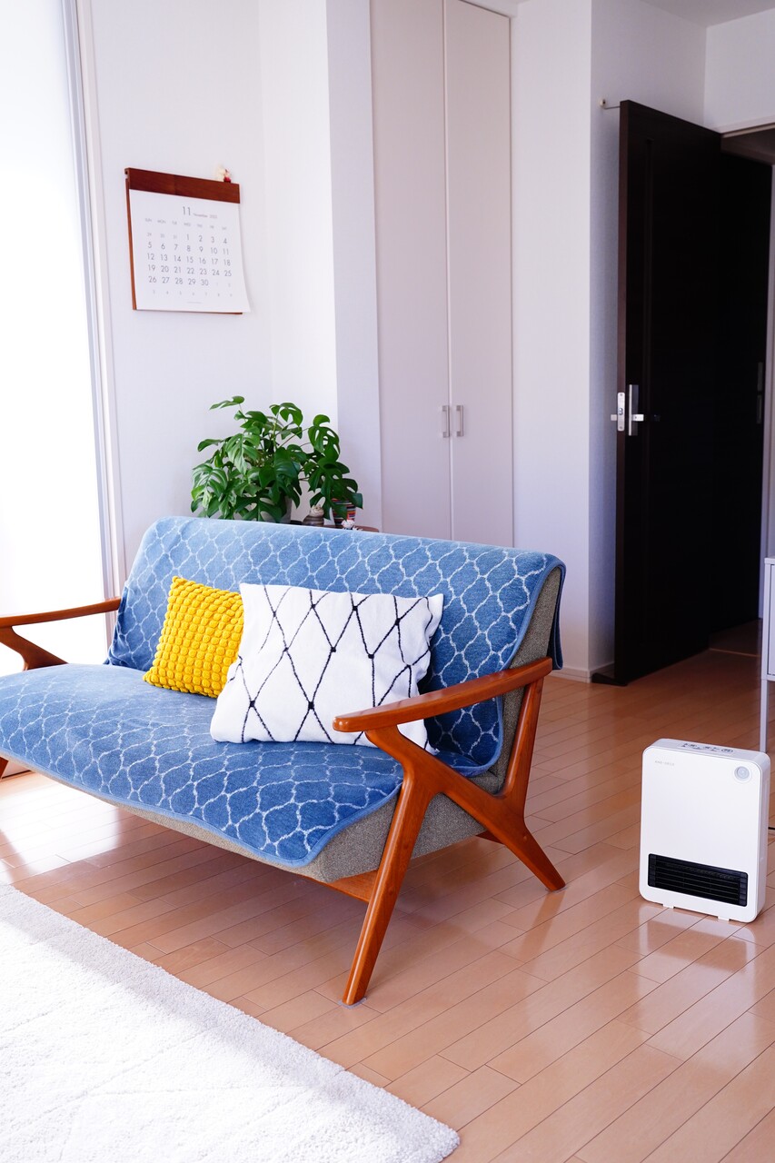 「炭八」入りのクッションを置いています。